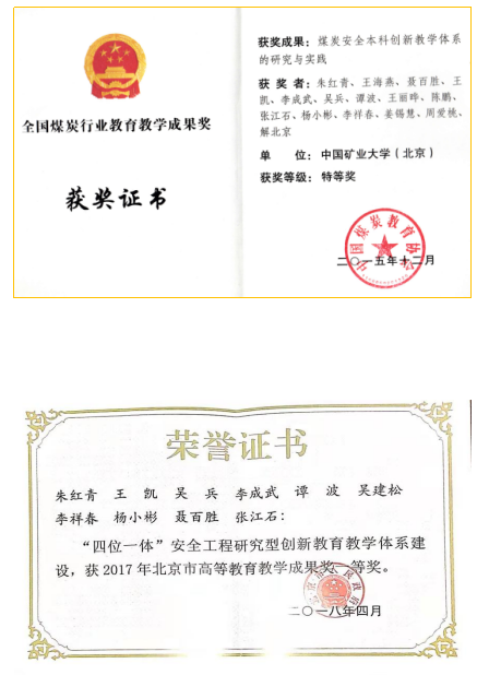 教研室遵循科学、安全、绿色和可持续发展理念,打造适应现代安全技术发展的人才培养模式,取得了丰硕的教改成果。教研室成员主持了《面向创新型卓越工程师培养的安全系统工程课程改革研究》、《安全系统工程一流课程(金课)建设及教学示范》和《国家级一流课程培育项目-安全系统工程(线上线下混合式)》教改项目;安全工程专业获批省级和国家一流本科专业;主持建设线上课程《安全评价理论与实务》;《安全系统工程与安全评价》被评为国家级线下一流课程;《“四位一体”安全工程研究型创新教育教学体系建设》获得北京市教育教学成果一等奖;《本科创新教学体系的研究与实践》获得全国煤炭行业教育教学成果奖特等奖;《安全工程特色专业创新型人才培养体系》获得校级优秀教学成果一等奖;发表教学论文20余篇;建立导师制教学团队,实现“导师+博士生+本科生”全程导师制;构建多层次立体课堂教学模式,强化研究型创新人才课堂教学;构建国际化人才培养交流体系。