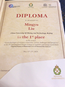 2019年5月17日“第十五届国际学生和青年科学家竞赛论坛”在俄罗斯圣彼得堡矿业大学落下帷幕。我院本科生刘明禹获工业安全组第一名。