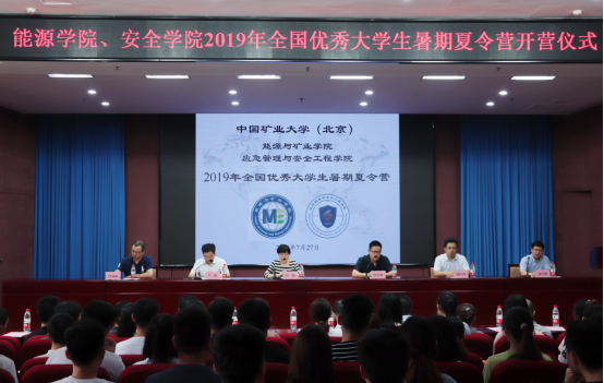 7月27日上午,夏令营开营仪式在交流中心二层报告厅隆重举行,研究生院副院长胡娟老师,能源与矿业学院党委书记杨大鹏老师、副院长杨胜利副教授,我院党委书记王凯教授、副院长聂百胜教授、佟瑞鹏教授出席仪式,相关负责老师及全体营员参加了开营仪式。胡娟副院长详细归纳介绍了报考中国矿业大学(北京)的十大理由;杨大鹏书记、王凯书记分别介绍了两院的学科设置、系所情况及研究生培养情况,我院副院长聂百胜教授主持仪式。