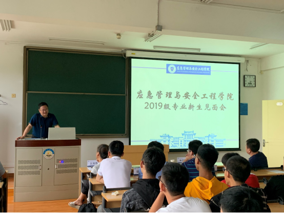 会议在庄严激进的国歌中拉开序幕,首先院长朱红青对2019及学生的到来表示热烈欢迎,接着他讲述了学院的历史,表明2019级新生是应急管理与安全工程学院独立成院以来的第一届本科生,并讲述了学院名字的由来以及师资队伍的基本情况,重点强调了安全专业作为本校的双一流学科它的压力与挑战并存,希望老师与学生共同努力、共创辉煌。谷博副书记以“三颗心”即初心,信心,决心,向同学们传达了真挚的期望与祝福,引导同学们以正确积极的态度与心态迎接自己的大学生活。接着王凯书记提出了自己的三点看法:做一个简单的人;做一个谦虚的人;做一个饱含热情的人。对自己的选择要全身心的奉献进去,希望大家努力学习,百炼成钢,不负韶华。