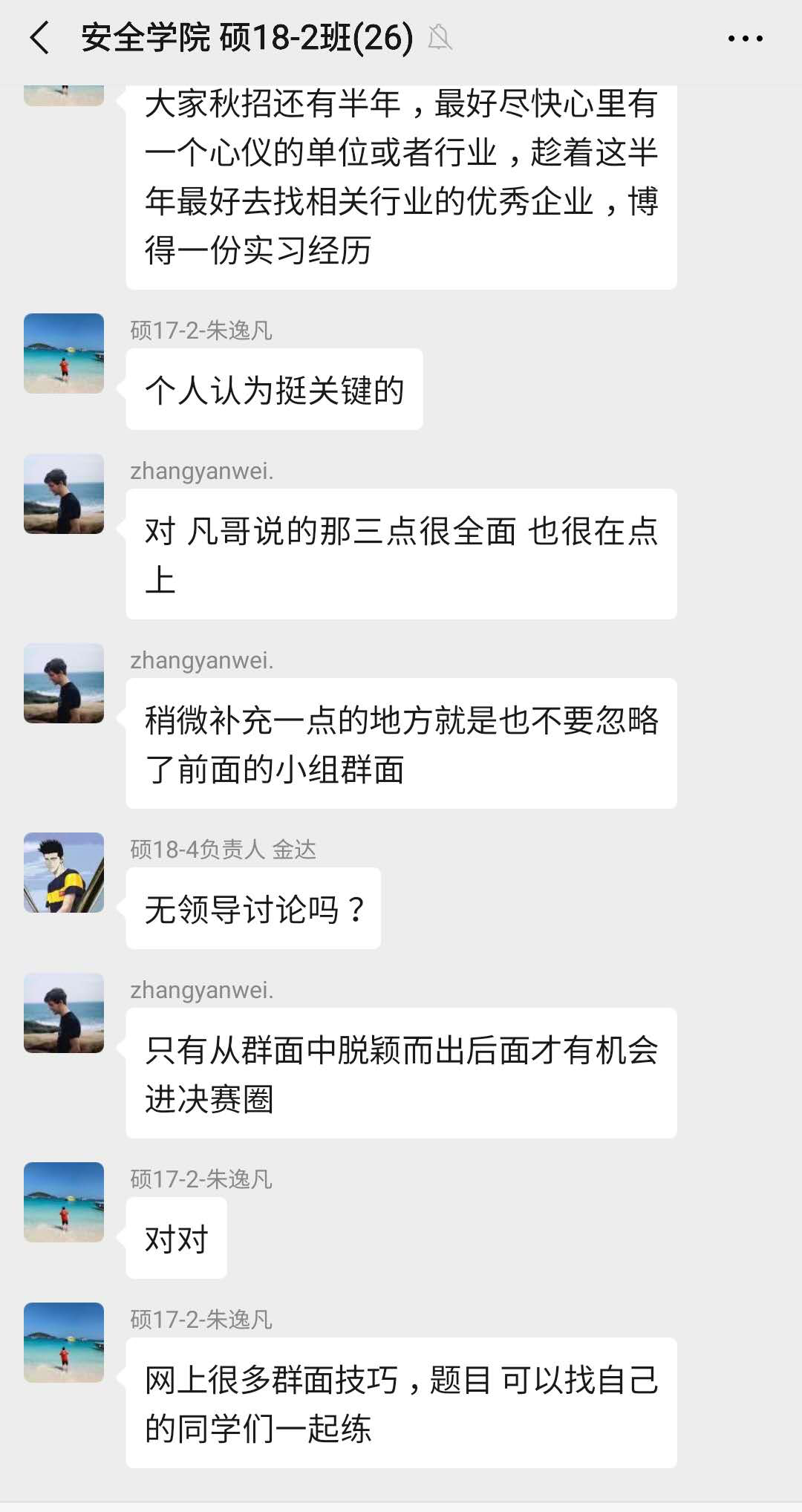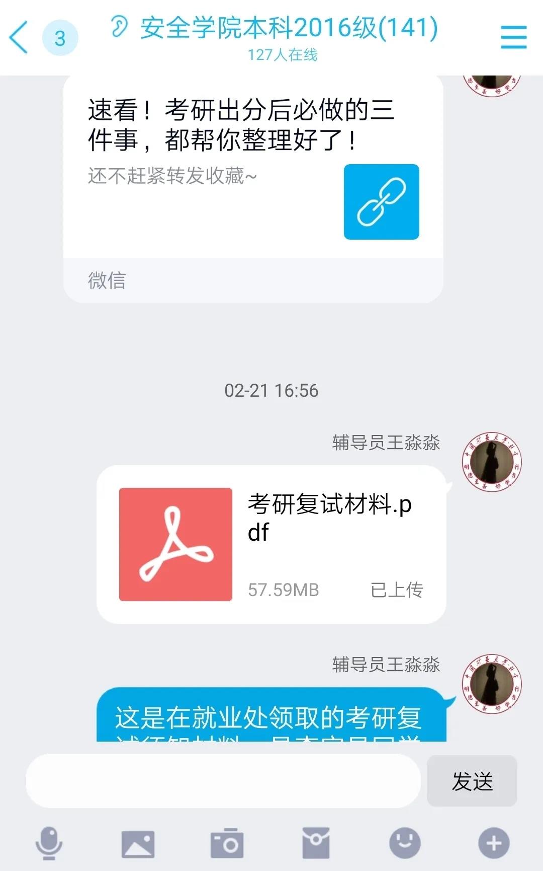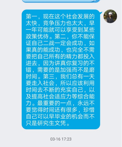 疫情期间正是考研复试、面试的关键节点,学院辅导员针对考研学生的情况不同进行分类指导,精准施策,打出考研服务“组合拳”:根据以往经验,分析研判,对于考研能进入复试的同学,进行考研复试资料收集和经验分享。