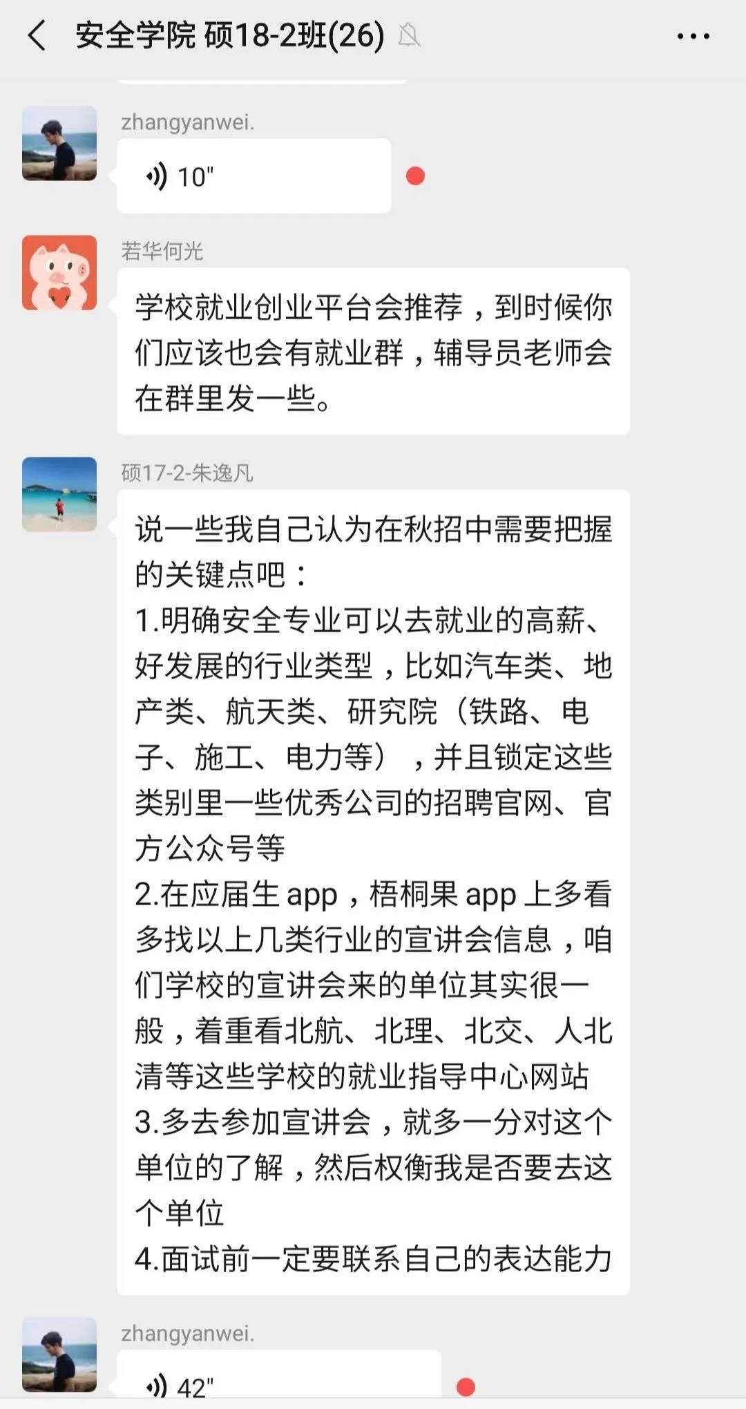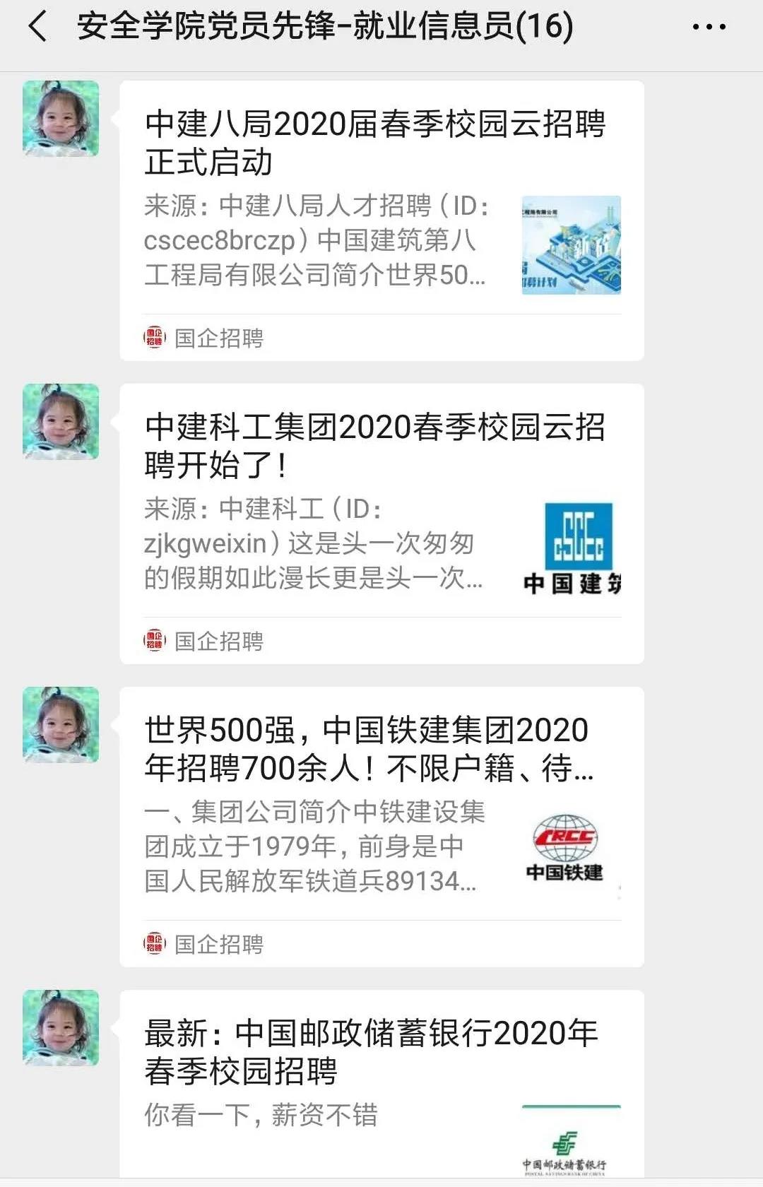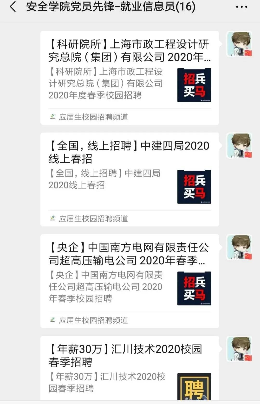 为降低疫情影响,提升就业质量,安全学院在毕业班设置“就业服务党员先锋岗”37个,搜集就业信息150余条,同时分享求职心得与技巧,动态摸查班级同学就业情况。针对就业困难毕业生,指定已落实就业的党员“分工协作,精准把脉,逐个击破,追踪服务”,根据自身优势,分工明确的为就业困难学生提供简历修改、就业信息推荐等帮助,提高就业竞争力。