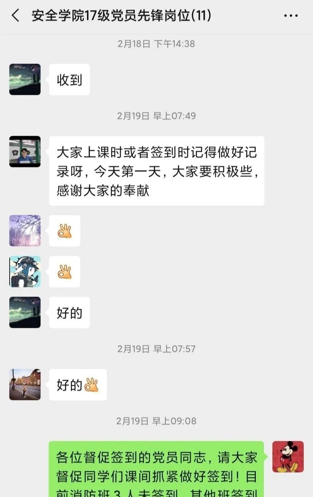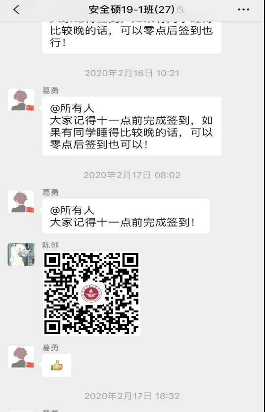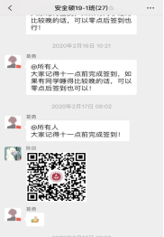 安全学院组织学生党员53人,形成17个监督小组,与入党积极分子、学生干部构成信息填报监督体系,通过线上沟通、电话联系等方式积极监督班级同学每日按时完成“疫情通”系统填报。在党员的协助下,学院全体同学的签到出错率逐步下降,准时度显著提高。