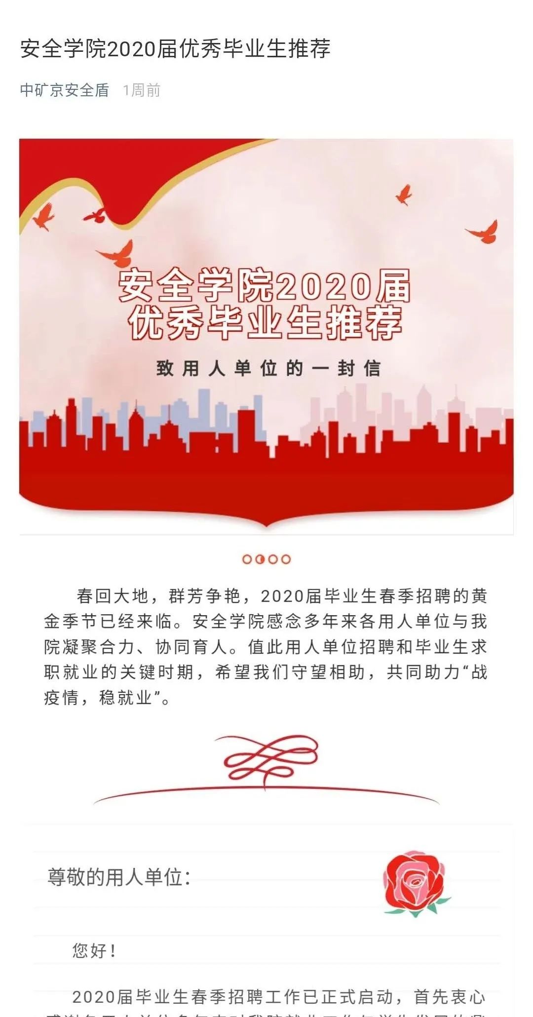 用人单位行动起来了。与安全学院休戚与共的他们,虽然承受着受疫情影响的经济下行压力,但是出于对安全学院优秀毕业生的信任,依然为毕业生们带来了就业岗位和发展机会,希望在即将到来的春天一起破土而生,茁壮成长。
