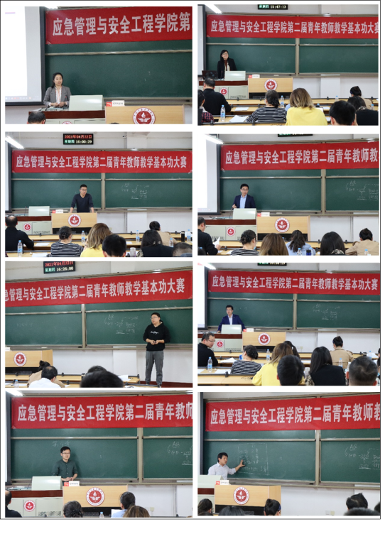 4.22日下午“应急管理与安全工程学院第二届青年教师基本功大赛”在教学楼102举行,比赛由朱红青、佟瑞鹏、傅贵、秦跃平、徐晓楠、王海燕、谷博、余咏梅8位老师和40位学生代表作评委,16位青年教师参加比赛,副院长佟瑞鹏主持比赛。