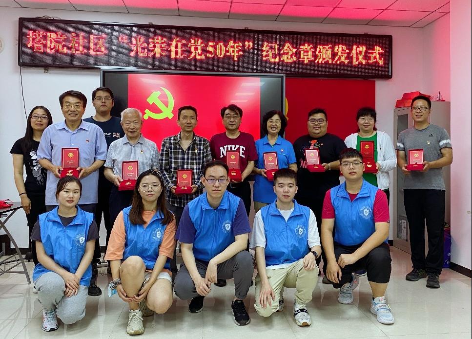 为庆祝建党100周年,传承红色基因,增强党员的荣誉感、使命感,传承党的优良传统和作风,安全学院硕士第一党支部和海淀区花园路街道塔院社区党支部开展红色“1+1”共建活动,共同举办“光荣在党50周年”纪念典礼,为老党员们颁发“光荣在党50周年”纪念章。