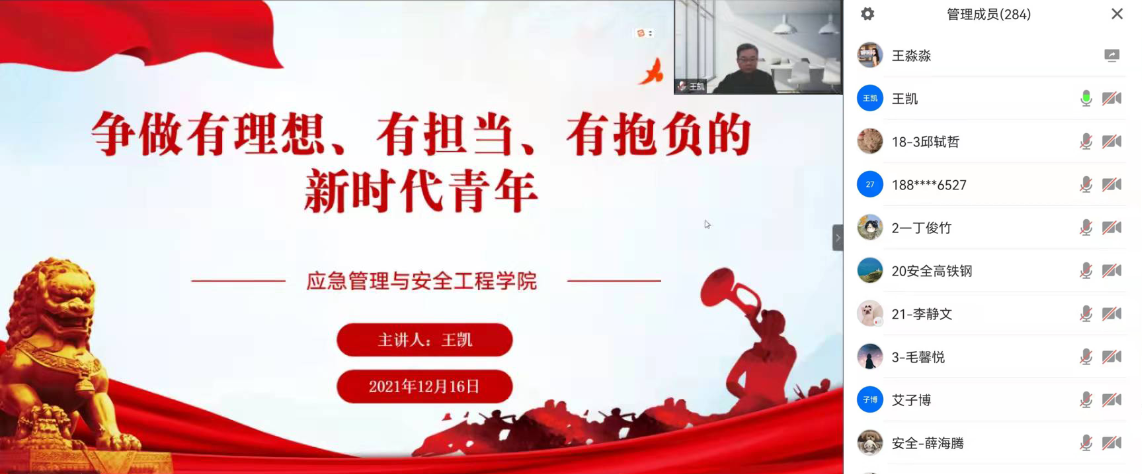 2021年12月16日,我院党委书记王凯为全院师生讲授“争做有理想、有担当、有抱负的新时代青年”主题党课,全院近300名党员和积极分子线上聆听党课。