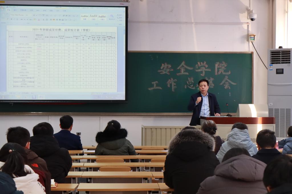 朱院长指出,在2022年,学院将积极转变发展思路,适应国家需求。积极推进培育教学名师、国家一流课程建设;推动学院研究生高质量发展;结合学科评估考核指标,集中组织国家“十四五”项目、国家自然科学基金项目等申报,组织集中科研成果鉴定,积极申报各类科研项目奖励,加大开展国家安全科学与工程研究院的相关工作。学院全体教师同心同力,共同努力,抓住机遇,争一流、上水平、出成果。最后,朱院长强调全体教职工在假期尤其是北京冬奥会期间要严格遵守疫情防控要求,并对相关工作进行部署与安排。