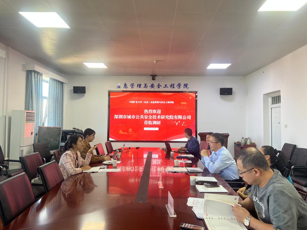 2023年10月9日上午,深圳城市公共安全技术研究院有限公司有关人员来我院就校企合作开展交流座谈。与会人员由深圳城安院李芳菲副总带队2人,我院党委书记杨庆舟携学工、教学、科研相关负责人出席会议。