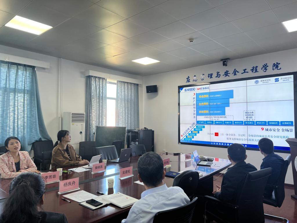 深圳城安院李芳菲副总就学院成立、发展等情况作了详细的介绍,并展示了单位宣传视频。杨庆舟书记对深圳市城市公共安全技术研究院有限公司一行的到来表示欢迎,并介绍了我院人才培养、学生创新实践、学生就业情况。佟瑞鹏副院长希望双方在研究生联合培养方面开展合作,王海燕副院长表达了在科研平台建设方面加强合作的愿景,周爱桃副院长表示双方可以在本科实践基地建设方面深度融合,副处级专职组织员张庆国老师提出双方可以在博士就业指导方面互惠互利。