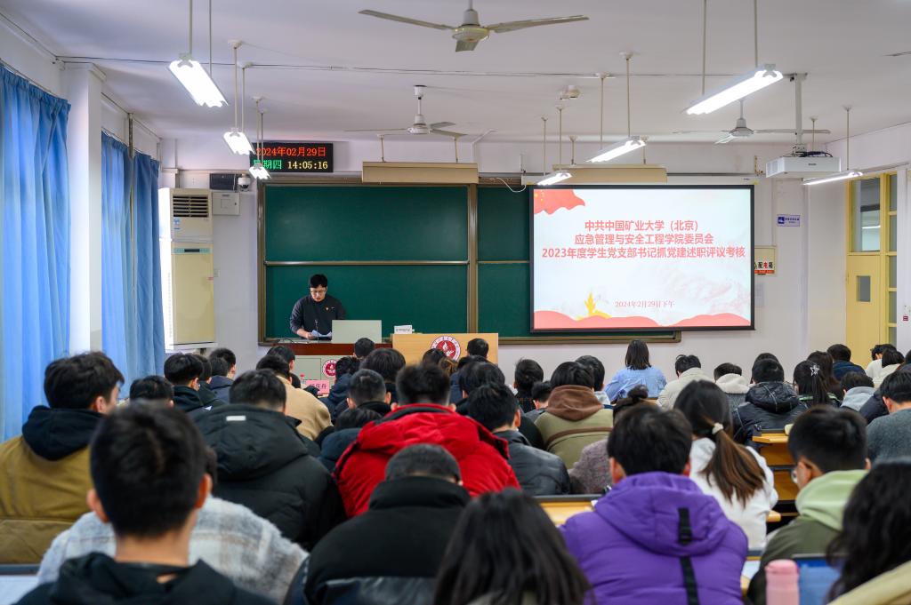 2月29日,我院召开了2023年度学生党支部书记抓党建述职评议考核会议,29个学生党支部书记参加述评,党委书记杨庆舟、党委副处级专职组织员张庆国、党委专职组织员王淼淼、各学生党支部书记、党员代表及学生代表参加会议。