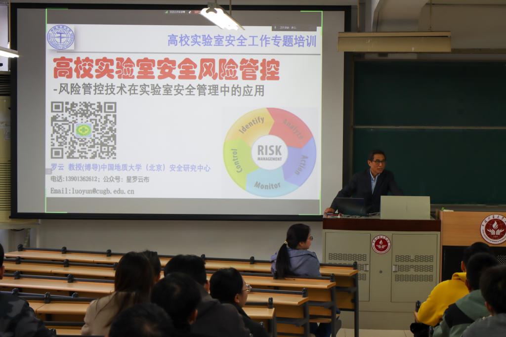 2024年11月20日,为积极响应中国矿业大学(北京)“科技创新、安全先行”实验室安全文化月系列活动,深入推进实验室安全文化建设,不断增强师生实验安全意识,提升师生实验风险辨识和管控知识水平,应急管理与安全工程学院邀请中国地质大学(北京)罗云教授,开展了题为《风险管控技术在实验室管理中的应用》的实验室安全专题讲座。应急管理与安全工程学院实验室分管院长和研究生分管院长,资产与实验室管理处负责人,学校相关院系代表,共约200余名师生以线上线下相结合的方式参加了活动。