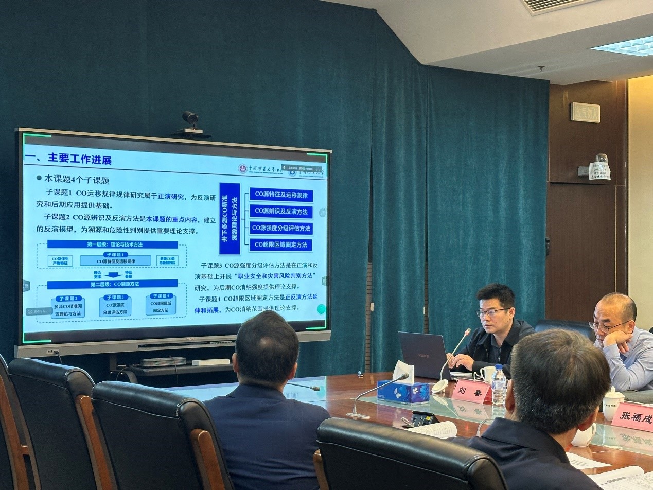 中国安科院院长周福宝教授汇报了项目基本情况及研究进展,项目所属5个课题的负责人分别汇报了各个课题的专项研究成果和技术设计方案等。中国矿业大学(北京)应急管理与安全工程学院谭波教授,汇报了课题一井下多源CO精准溯源理论与方法的中期成果进展,阐述了多源CO精准溯源辨识模型和CO超限区域分级圈定模型设计方案,完成了多源CO及伴生产物氧化动力学特征研究和井下CO源强指数演变规律解析。专家组听取了课题组汇报,审阅了相关技术资料,认为课题提交的相关技术方案资料符合重点研发要求,理论模型架构设计合理。建议参考专家意见,在后续研究中进一步优化溯源模型泛化能力,提升复杂环境下的适应性。