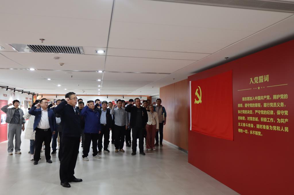 参观结束后,全体党员在杨庆舟书记的带领下,面向党旗庄严宣誓,重温入党誓词。铿锵有力的誓言响彻展厅,彰显了教师党员坚守初心、廉洁奉公的坚定决心。