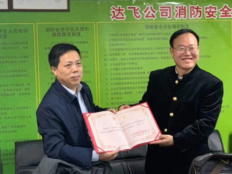 达飞集团是一家专门从事安全科技的国家级高新技术企业,具有国家安全生产监督管理总局颁发的安全评价甲级资质、公安部认定的一级消防安全评估机构等七个国家级资质,致力于安全规划、安全评价、消防评估、重大危险源评估、安全生产标准化评审、社会稳定风险分析与评估、HAZOP分析、安全科技研究、安全技术咨询、事故应急预案编制与演练指导、企业安全文化建设、安全监控系统等业务。 在安全技术方面,拥有“两司一院一所一会”,即达飞安评管理顾问有限公司、达飞安全科技有限公司、达飞安全技术研究院、达飞英才注册安全工程师事务所、中国职业安全健康协会校园安全健康专业委员会。在我校110周年校庆日,达飞集团向安全学院捐赠10万元。
