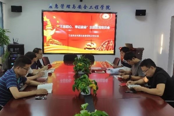 2019年9月25日下午,应急管理与安全工程学院工业安全与职业危害研究所党支部“不忘初心、牢记使命”主题教育部署会在综合楼707召开,党支部书记周爱桃主持会议,党支部成员徐超、臧杰、郭海军、赵伟、周彪参加。