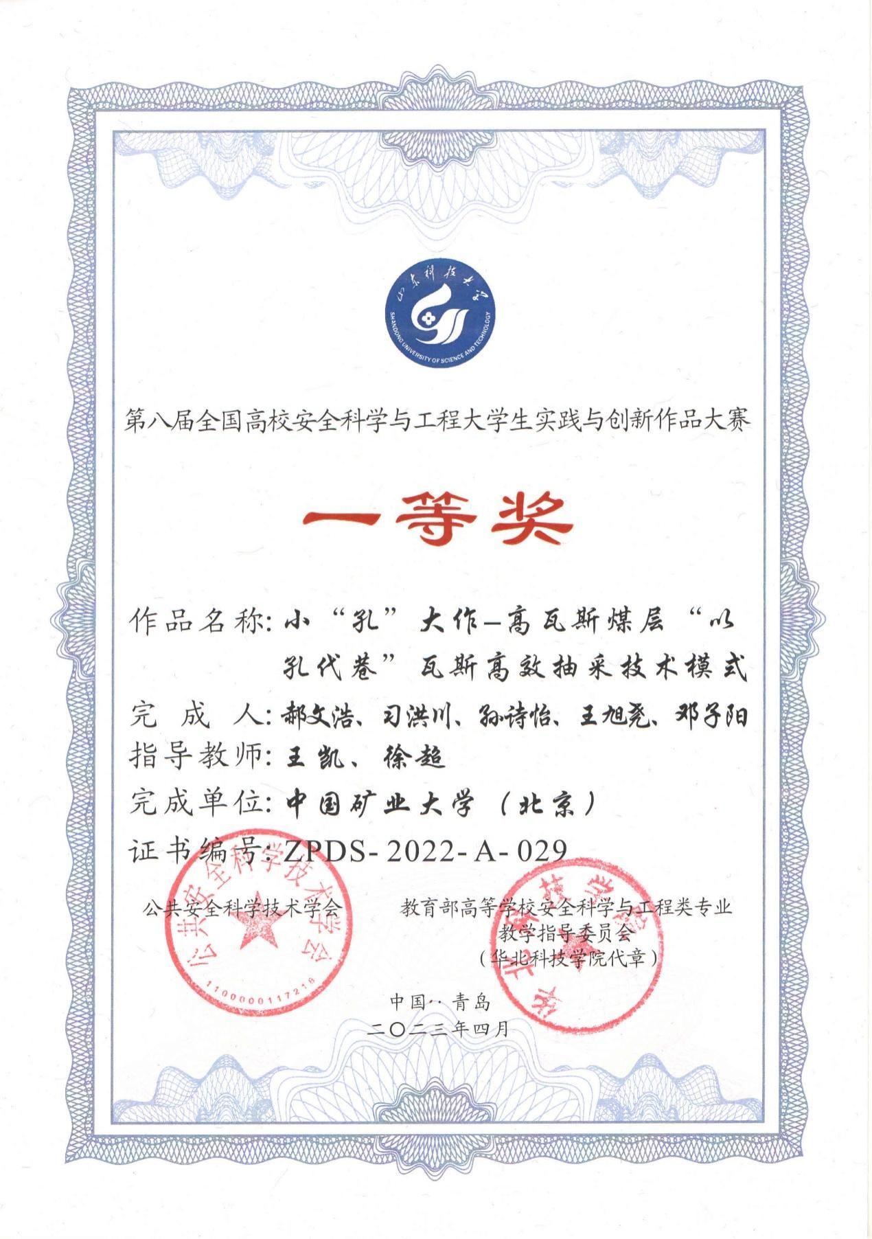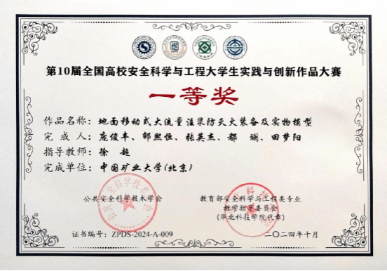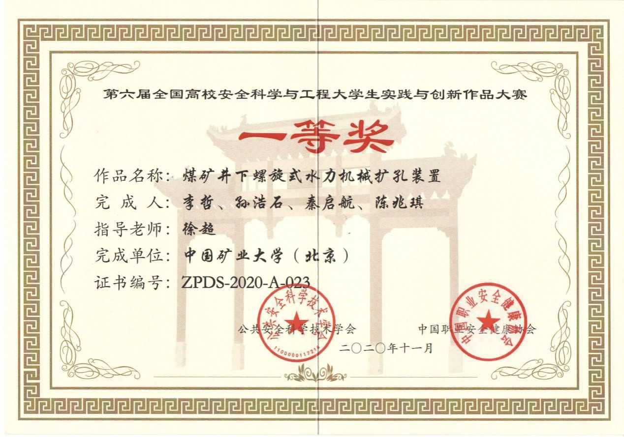 立足安全科学与工程国家一流学科和安全工程国家一流本科专业建设,以大学生创新训练内涵建设为抓手,实现创新训练与平台、课题、团队“四位一体”深度融合协同育人,使本科生全程导师制落到实处、细处。大学生开展创新训练,离不开高层次平台的支撑,本人鼓励学生积极利用全国重点实验室、北京市重点实验室等平台及仪器设备,开展相关科研创新训练;将本人负责的国家自然科学基金项目、企业委托课题中的部分研究任务摘出来,交给参与创新训练的本科生完成;以科研任务为导向,将本科生与部分博士生、硕士生组建纵向链式学习科研团队,手把手教授实验仪器操作技巧、论文和专利撰写方法等。通过“四位一体”深度融合协同育人,显著提升了学生的协同创新素质、实践动手能力和团结协作精神,培养了严谨创新的科学精神和精益求精的工匠精神,拓宽了学生视野,并取得了较为优秀的成绩。目前已指导完成国家级和校级大学生创新训练项目8项,完成了“煤矿井下螺旋式水力机械扩孔装置”“同时测定多煤层瓦斯压力的装置及方法”“‘欣创’联合防掉钻装备”“高瓦斯煤层以孔代巷瓦斯高效抽采技术模式”等多项作品,并积极参加全国高校安全科学与工程大学生实践与创新作品大赛、中国国际“互联网+”大学生创新创业大赛、“挑战杯”大学生课外学术科技作品竞赛等。